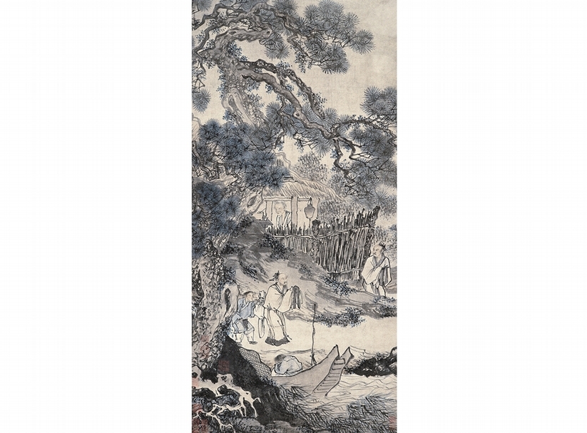 周臣〈柴門送客圖〉,立軸紙本設色,121×57公分。圖/南京博物院