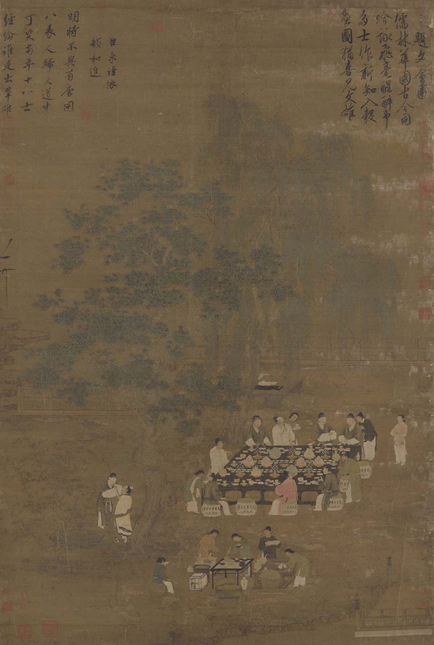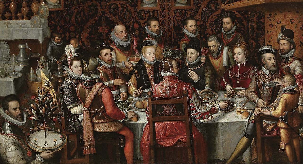 宴飲也是政治,阿隆索.柯也洛(Alonso Sánchez Coello)的作品《君主的宴會》(The Banquet of the Monarchs)標誌著歐洲哈布斯堡王權的力量、血脈和勢力的拓展,一如清代姚文瀚《紫光閣賜宴圖》顯露著皇權的至高性。宴飲甚至可以是宗教與犧牲的,「最後的晚餐」那無數藝術家描繪過的場景,一再地重演著關於「犧牲」的預示以及人性的盲目、謊言、驚恐和惶惑,於是「同桌共食」有了全新的意義。梵谷(Vincent van Gogh)的《食薯者》(The Potato Eaters)將勞動者那令人動容的誠摯與辛勞,在宛若聖光的油燈前、共食的那一刻,構成了對生活與生命的深刻反思。