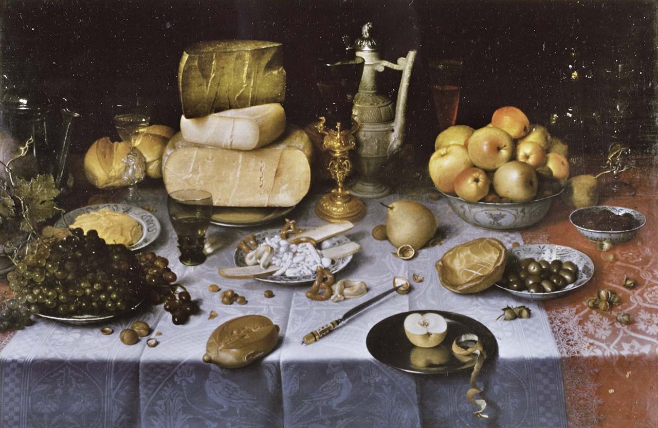 如果說宴飲投影了社會的政經階級,那麼食材、食物乃至於食器,則顯像了一個時代食物背後的世界圖像。荷蘭做為第一個近代資本主義興起的社會,其黃金時期的繪畫最鮮明地體現了味覺背後的世界圖像。其獨特的食物靜物畫,其中描繪出的食材、食物及食器,在靜謐的宗教精神氣質中,無聲地流露著其新教資本主義的味覺世界與其商業資本及版圖擴張同步並進的面貌。