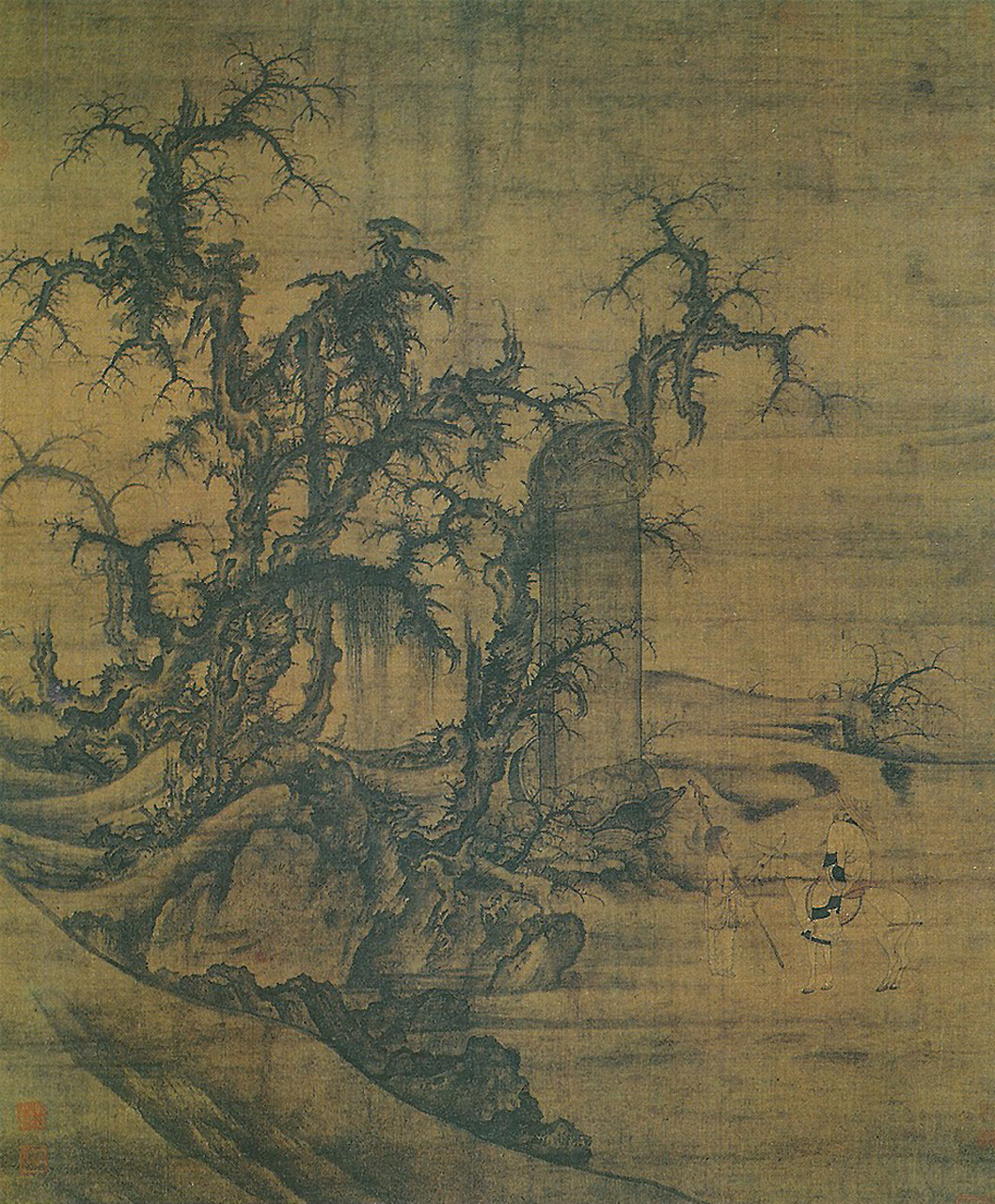 (傳)宋代李成、王曉《讀碑窠石圖》
