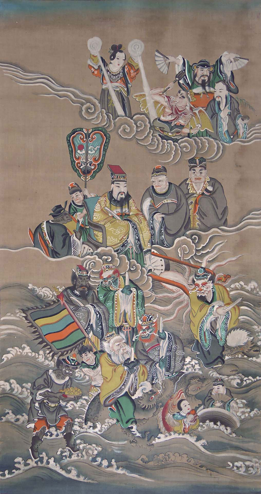 道士為布置臨時性之法壇,習慣使用神祇畫軸作為莊嚴仙境之表現,正由於畫軸便於收納,加上壇場布置效果極佳,可謂功能性強烈,但這些物件唯有在儀式進行當中,才有其宗教象徵的神聖意義。有關於祈雨儀式之神祇畫軸,包括《水國諸神》與《普化天尊》。