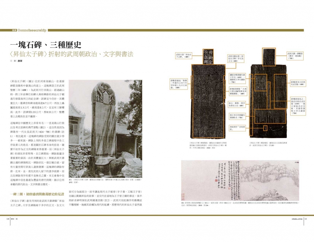 本文節選自《典藏.古美術》2021年10月號,原文篇名〈一塊石碑、三種歷史:〈昇仙太子碑〉折射的武周朝政治、文字與書法〉,作者:唐寧。文中另有「則天新字:一代女皇的創造力和統治術」以及「名家薈萃:唐代法書的寶庫」等節,精彩解析〈昇仙太子碑〉中的新造字及鳥篆飛白書等特色。完整內容歡迎選購雜誌閱讀。