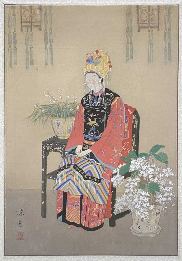 此外,也有畫家描繪其他種蘭花,呈現臺灣獨有的熱帶風情,比如第5回台展就有周紅綢的《オンシヂューム(文心蘭)》、吉川清江的《カトレア(嘉德麗雅蘭)》、市川シヲリ的《デンドロビューム(石斛蘭)》等,這些蘭花都是溫帶地區所罕見的花朵,亟富異國氣息,強調臺灣作為日本南方領土的特殊性。當然,除了這些艷麗多變的蘭花之外,也有葉子狹長、花朵較小的蕙蘭,如府展第3回展出張麗子的《清薰》。