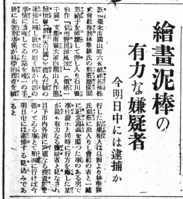 3. 〈繪畫泥棒の 有力な嫌疑者 今明中には逮捕か〉《臺灣日日新報》,1932年1月20日夕刊2版。