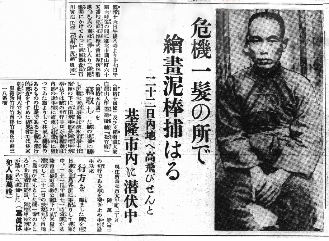 5. 〈危機一髮の所で 繪畫泥棒捕はる 二十二日內地へ高飛びせんと 基隆市內に潛伏中〉,《臺灣日日新報》,1932年1月23日7版。