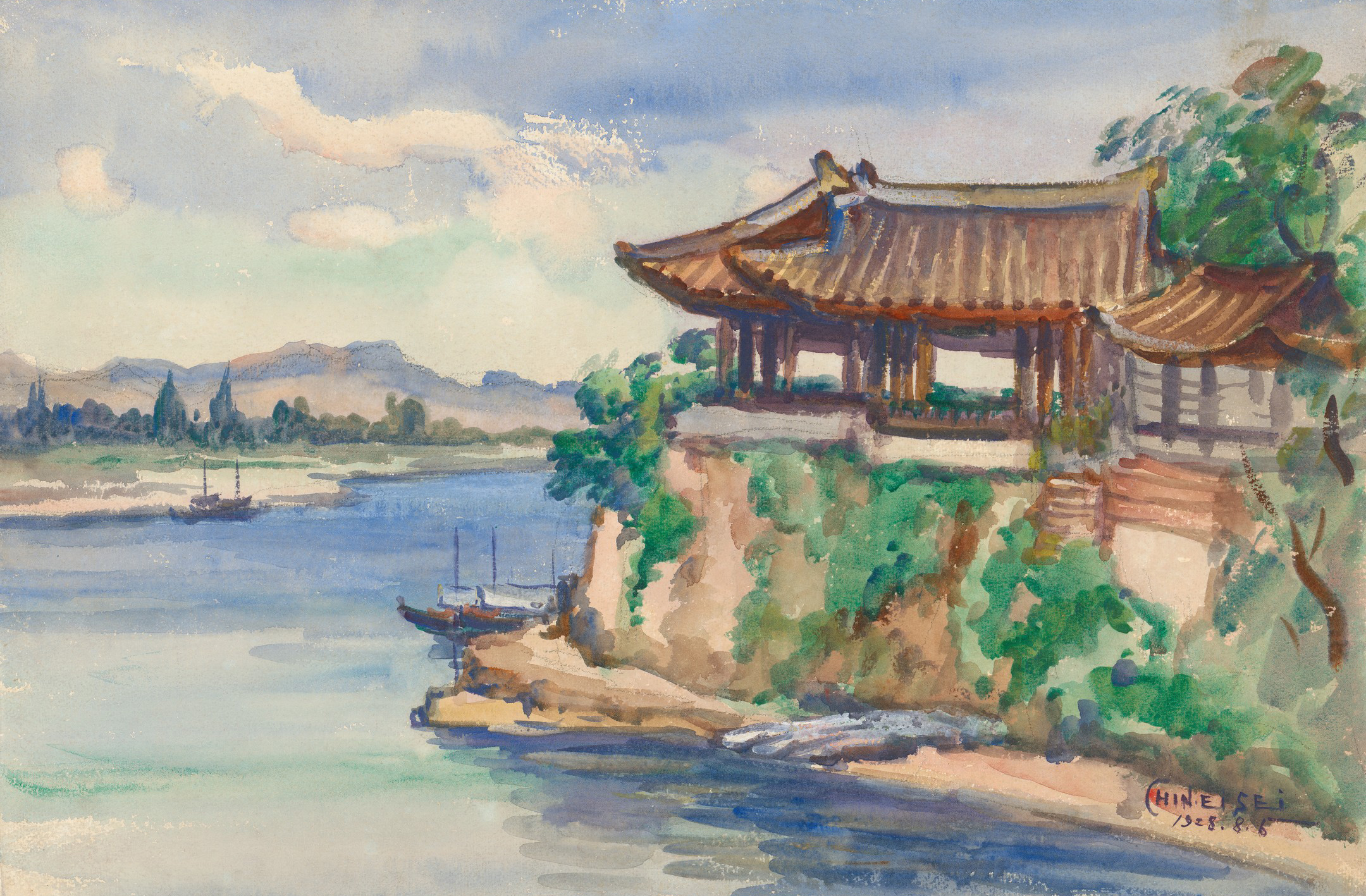 令人印象深刻的是,這次展出的陳英聲作品中,除了一件《山地風景》為日治時期常見的原住民主題外,其他五件則是他在1928年與藍蔭鼎一同前往滿洲與朝鮮寫生旅行時,所留下作品。而這也讓人好奇,在各種國際藝術交流已蔚為常態的當下,近百年前的藝術家們的異國經驗為何?5月7日,台灣美術史研究者劉錡豫則在「旅行的意義:陳英聲與藍蔭鼎的東北亞寫生之旅」講座中,為觀眾詳盡解析了這次旅程的緣起與成果,帶領觀者解讀這些台灣「地方色」以外的異文化風景。