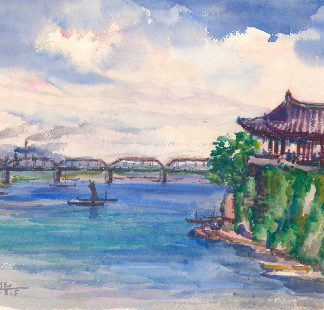 劉錡豫進一步表示,《平壤大同江》上描繪的大同橋在後續的韓戰中,因戰爭被北韓軍隊炸毀,橋上逃難的倖存民眾為了不落入寒冷的江水中凍死,抓著殘缺的橋體也要爬到對岸,這畫面曾被美聯社攝影記者德斯佛(Max Desfor)拍攝下來,成為象徵韓戰的重要媒體圖像之一。劉錡豫的比較也讓觀眾了解到,畫中的朝鮮半島風景,如平壤大同江、練光亭與金剛山,現在幾乎都在北韓境內,是當下的我們,特別是全球疫情下,無法輕易到達的地方。過去的旅行困難在於交通與花費,現今的旅行反而是麻煩在冷戰遺緒的國際政治與病毒。兩個時代的對比,值得深思。