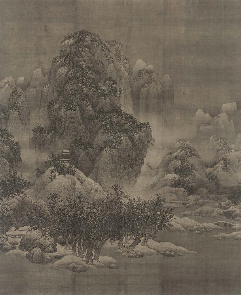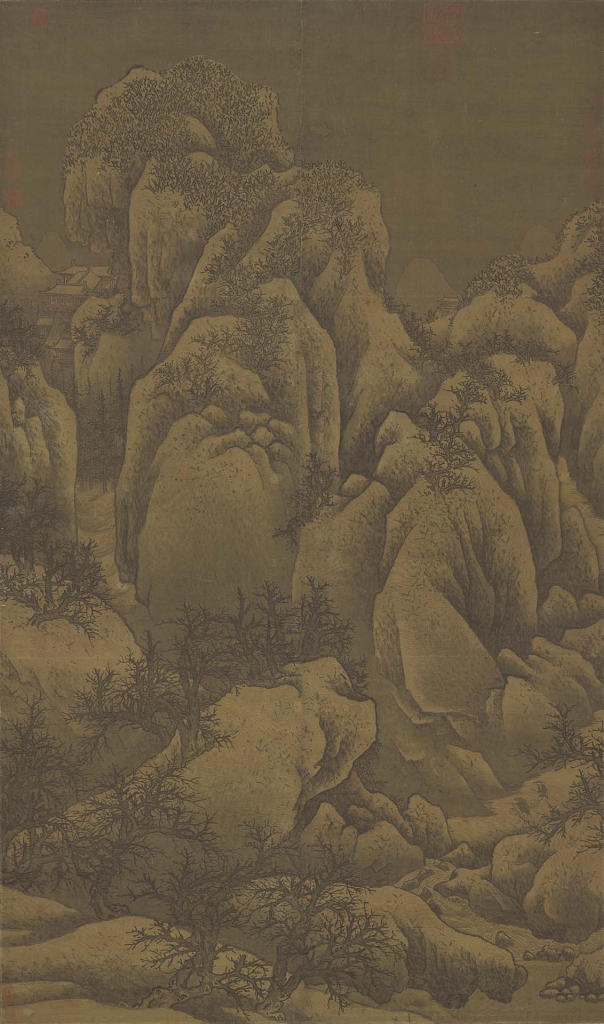當然,這是因為「比較」,如果沒有〈谿山行旅圖〉在前,臺北故宮只此一幅〈雪山蕭寺圖〉,恐怕它也能像〈雪景寒林圖〉在天津博物館一樣成為鎮館之寶。所以論〈雪山蕭寺圖〉,應該先把它從〈谿山行旅圖〉旁邊拉開,作更客觀的分析。