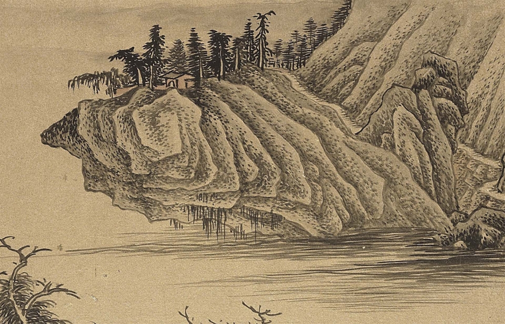 附記:近四年來,我分別臨摹了上述三張作品,因為追摹筆蹟,仿佛扮演原創者,所以很多原創的心情都能體會,甚至可以感受畫家在什麼地方出錯,又是如何補救。也可以由筆觸推想畫家伸展手臂的角度。譬如〈雪山蕭寺圖〉近景與遠景在筆法上的差異,可能是畫家晚年體力較弱造成。