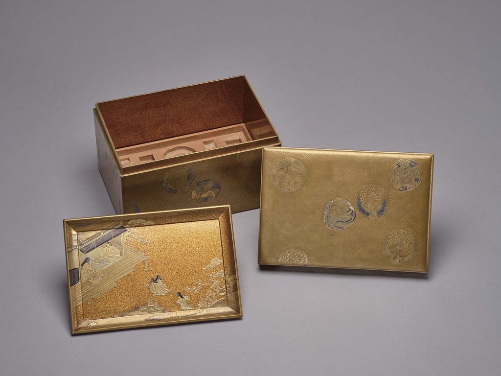 明清以來,北京故宮博物院院藏大量古代日本漆器文物,其中描金漆是日本工藝中成就最高的種類,享譽世界。描金漆,又稱日本蒔繪,是用金粉和漆塗繪於漆器上的一種特殊裝飾技藝。描金工藝起源於中國,於隋、唐之際傳入日本,15至16世紀日本在蒔繪工藝取得了很大的發展。清朝宮廷造辦處自雍正時期起,即已使用洋漆作為盒面裝飾,在《清宮內務府造辦處檔案》中有諸多關於「洋漆」的記載。