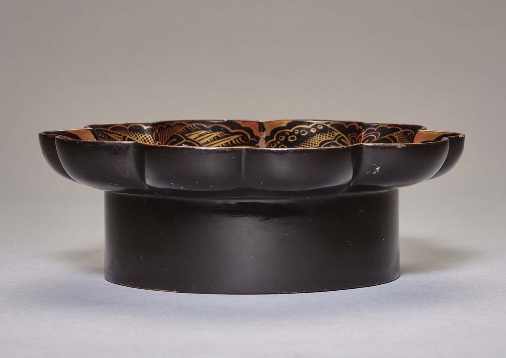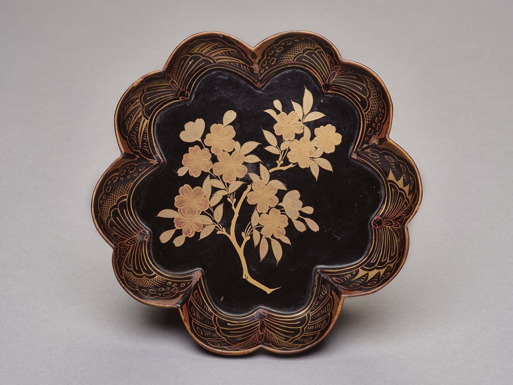 3.〈黑漆描金折枝梅花紋菊瓣式盤〉
