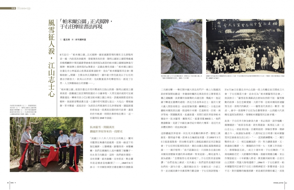 (完整圖文請見《典藏.古美術》第360期9月號〈風雪征人淚,江山志士心──「帕米爾公園」正式揭牌,于右任摩崖書法再現〉,作者:藍玉琦)
