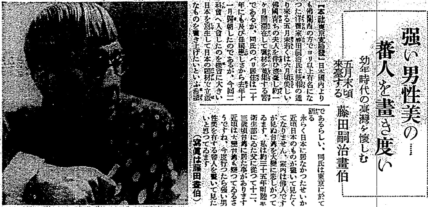 4. 〈强い男性美の……蕃人を畫き度い 藤田嗣治畫伯〉,《臺灣日日新報》,1934年3月18日(版7)。
