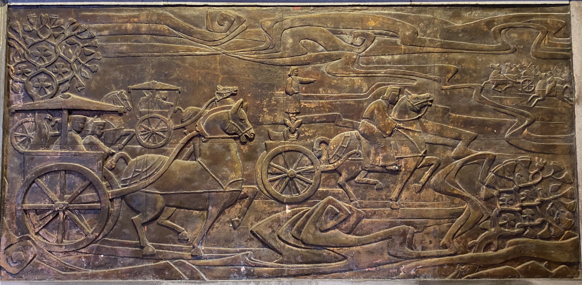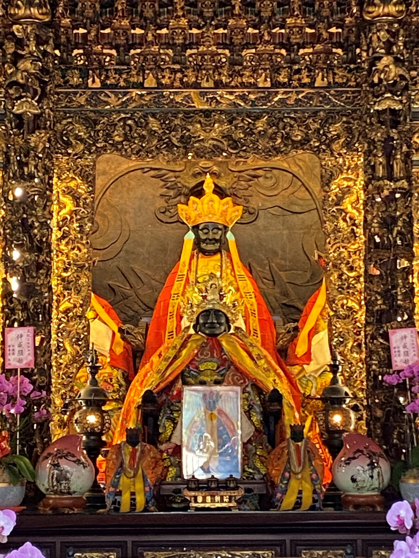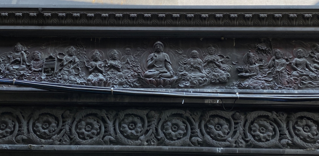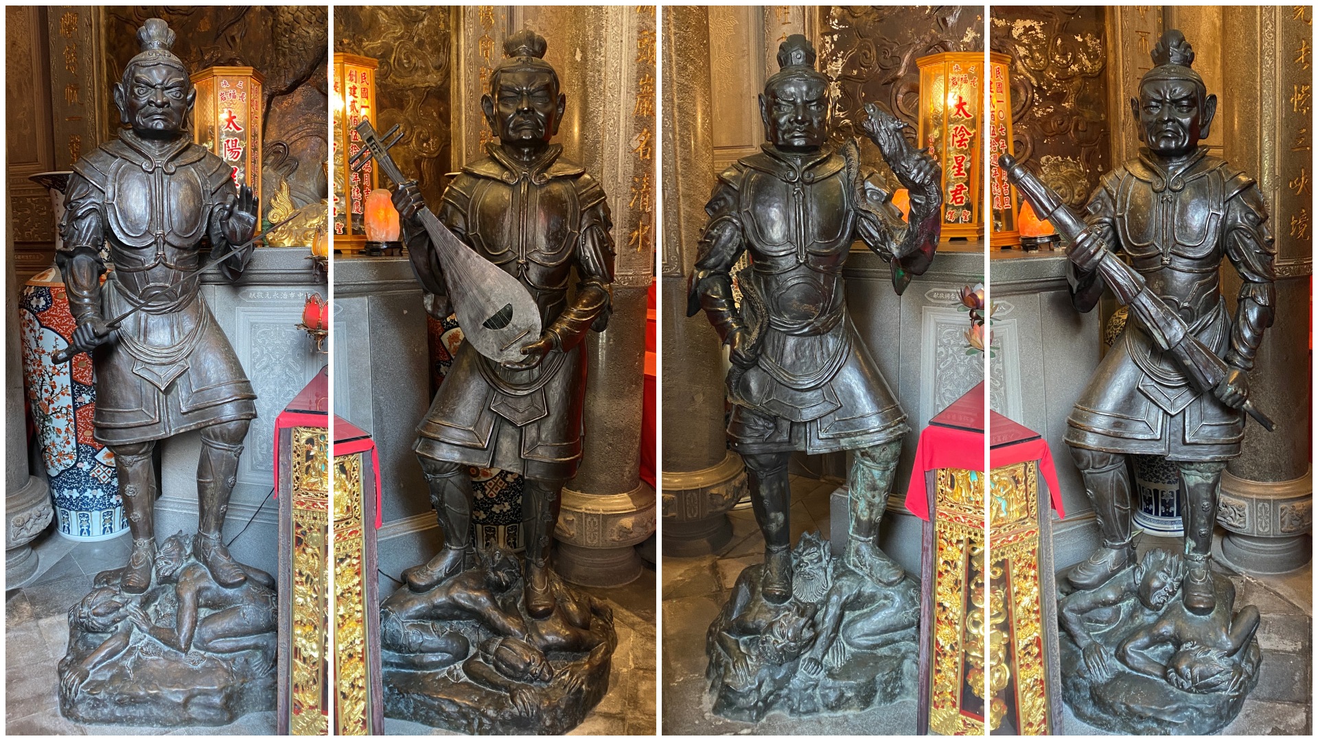 這系列作品中另外值得特別關注的作品,即是李梅樹參考日本佛教造像所繪製,並交由學生製作的浮雕與圓雕作品,包含中殿左右護龍外牆水車堵上的細長型浮雕,以及四大天王像等。水車堵上的細長型浮雕包含「阿彌陀佛及大菩薩來迎圖」、「護法神將圖」、「禮佛圖」,根據學者研究,這應該是李梅樹參考日本佛寺雕刻、繪畫圖冊而來。此外,祖師廟中的四大將、太陽星君、太陰星君等,雖然在裝飾上仍依據傳統的形式,但造型上以更靠近西方寫實的方式塑造,可說是隱約呼應了黃土水《釋迦像》的西方寫實風格。值得注意的是,在此之前,楊英風即以西方雕塑的模式來塑造傳統佛教造像,他曾在1958年到1961年間任教於國立藝專,祖師廟這部分的佛教浮雕與圓雕,除了李梅樹之外,是否也有受到楊英風的影響,或許是值得進一步深論的議題。