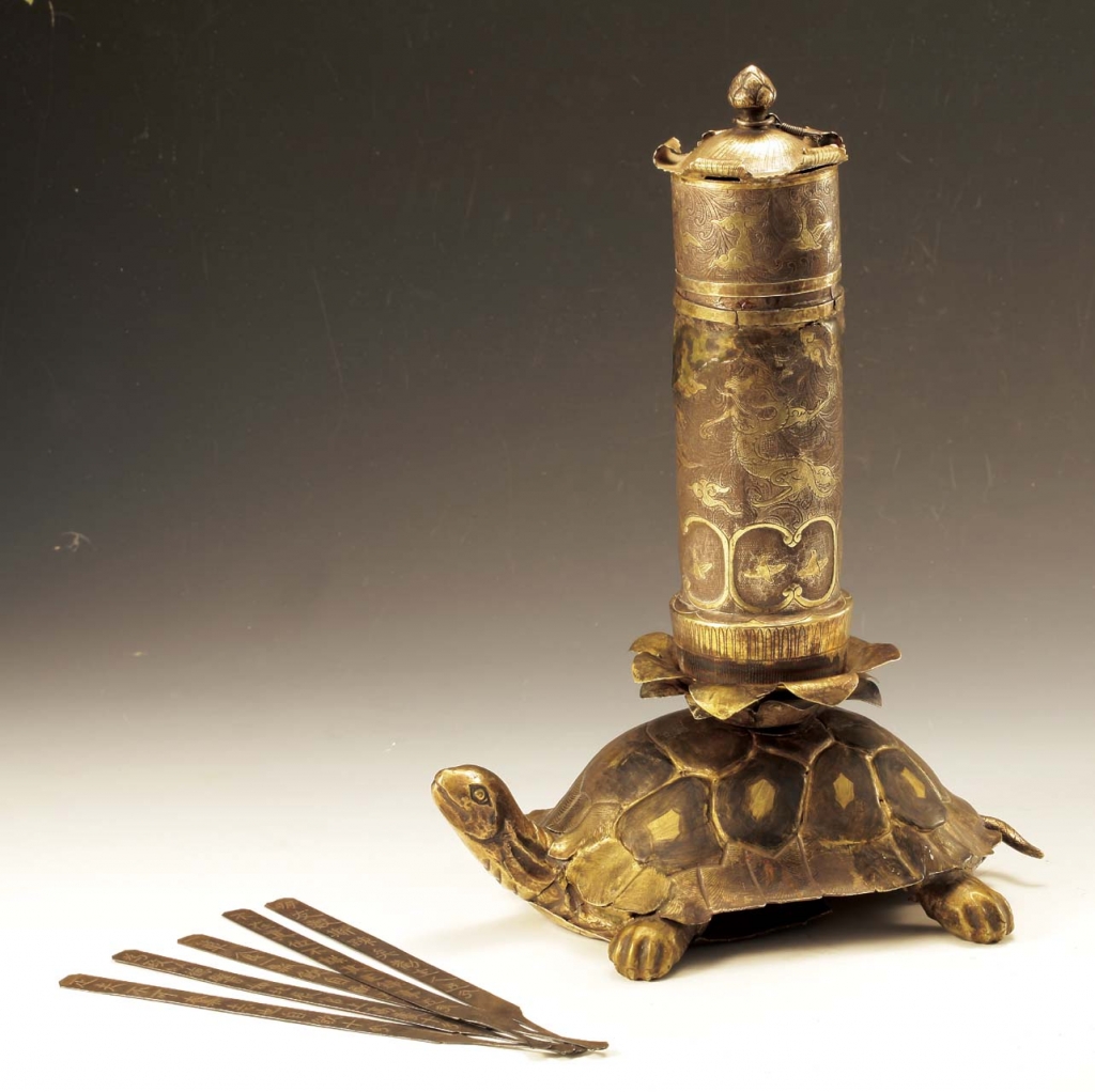 唐代〈銀鎏金龜負酒令筒、酒令籌〉