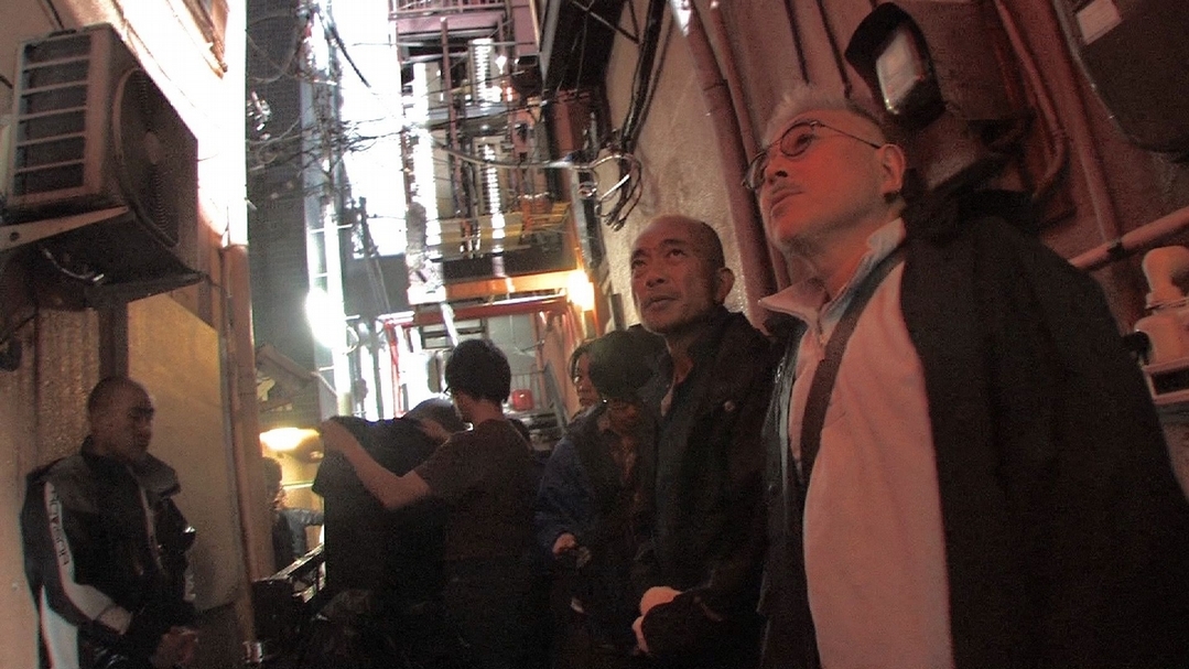 《赤裸之夜 不惜奪愛》(2010年),竹中直人和石井隆導演在拍片現場。(本刊資料室)
