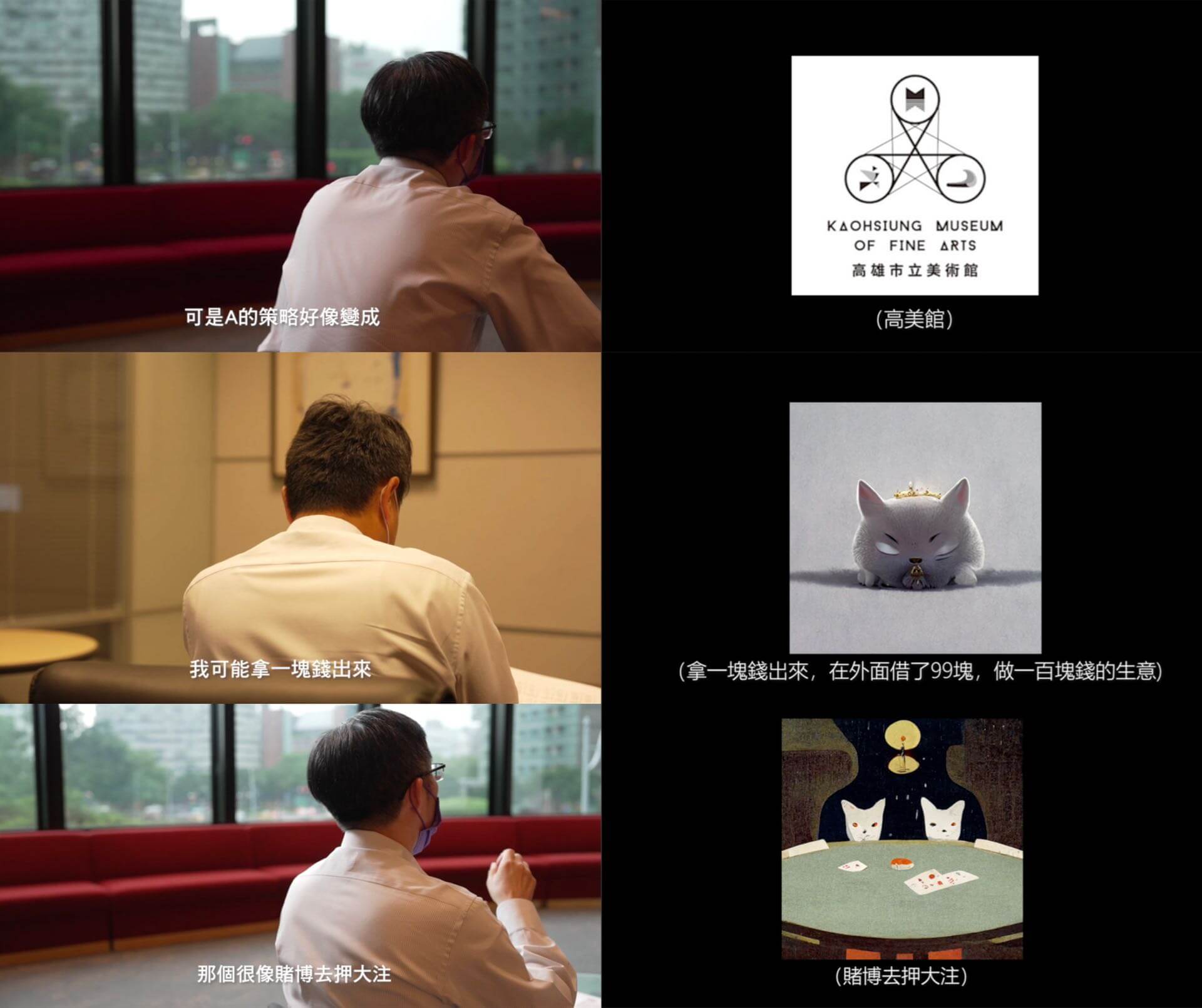 如果說,愚者崔廣宇《2022大台灣上市上櫃藝術株式會社暨文化價值生產力分析》腐蝕著藝術圈的財務迷思,那麼還必須說的是這個義無反顧的愚者,竟然在委託製作預算不足的情況下,自掏腰包貼錢完成了可能十分惹人厭的作品。
