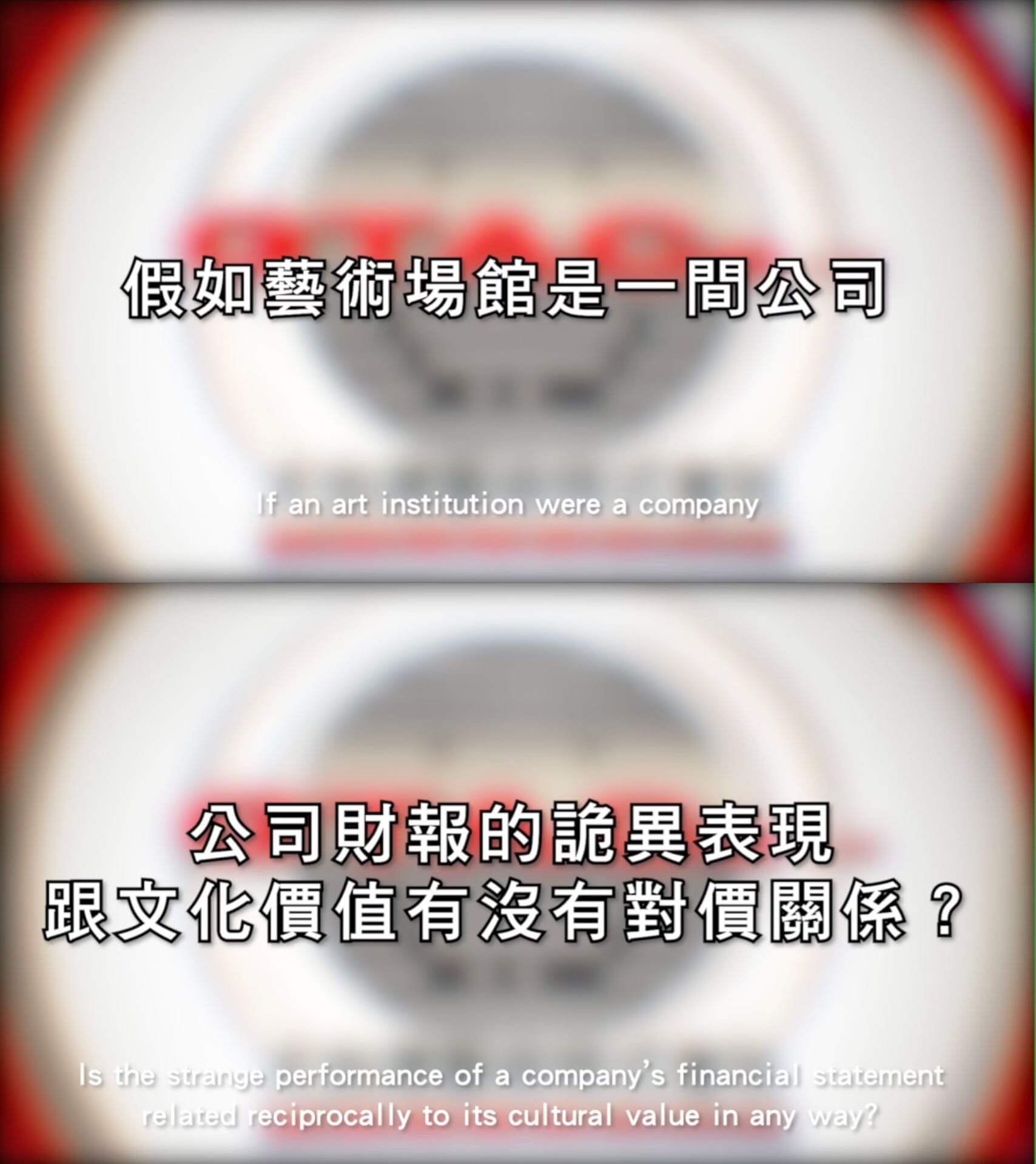 文化永續…如果將藝術場館當作是一般企業進行財報分析,評估其生產力與ESG(註9),相對於藝術領域之外的普世價值來說,兩者所呈現的數值意義是否相同?哪些數字可以反映這樣的社會責任?而無法反映在數值對價上的空缺是否就是所謂的文化價值?這些無法被評估的價值能被重新檢視嗎?藝文創作有場館與全民納稅支持作為後盾,是否就是這個價值的絕對保證?此計畫與具公信力的財金會計專業合作,運用財金統計學的邏輯與方法(非「社會投資報酬率」,又稱SROI系統),對台灣藝術場館的永續價值與產能進行分析,階段性地揭露數據分析的結果並提出數字可能蘊含的意義,從數字所反映出的現象去發掘並提問社會價值與文化實踐兩者之間的關聯性。