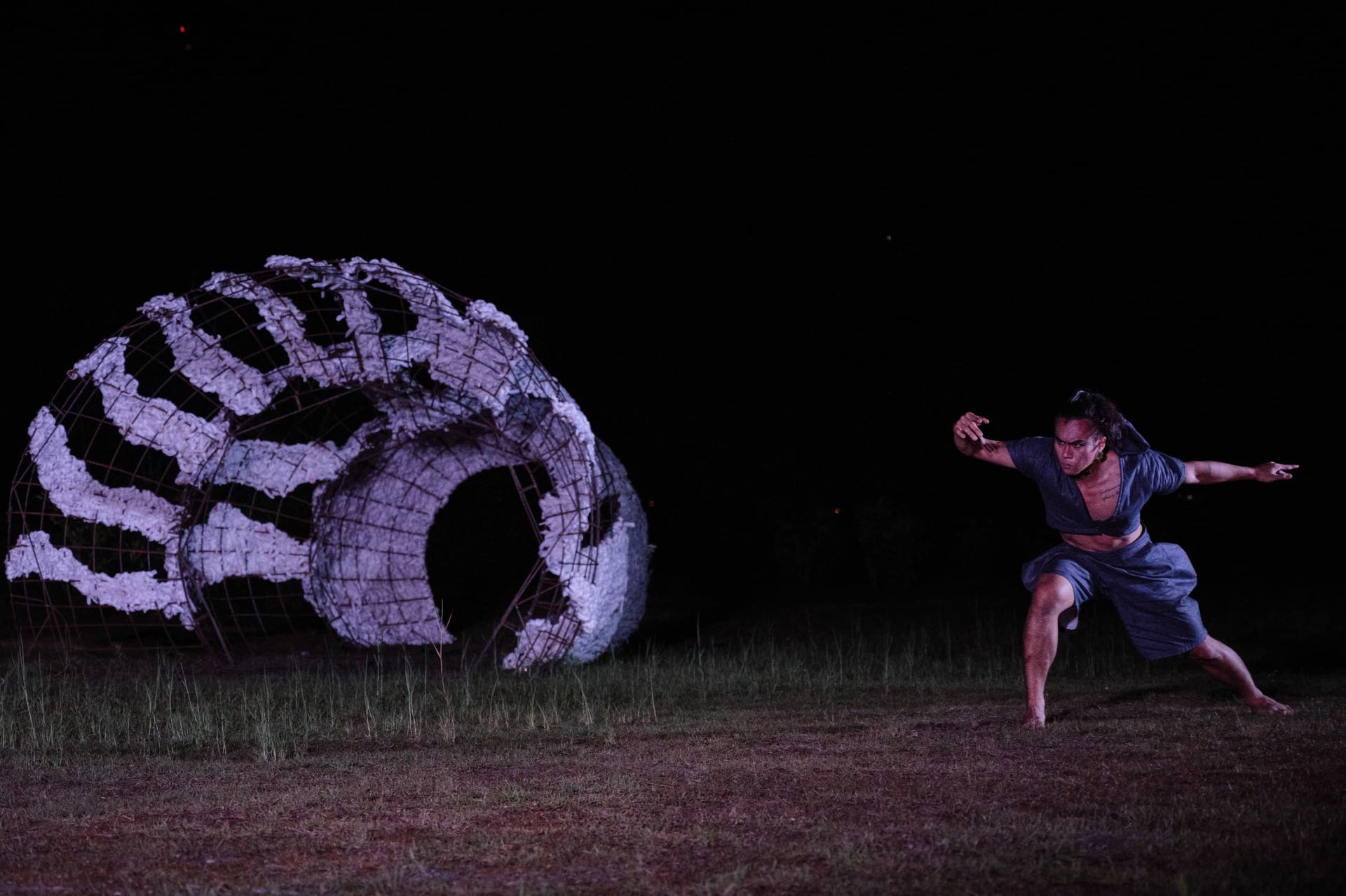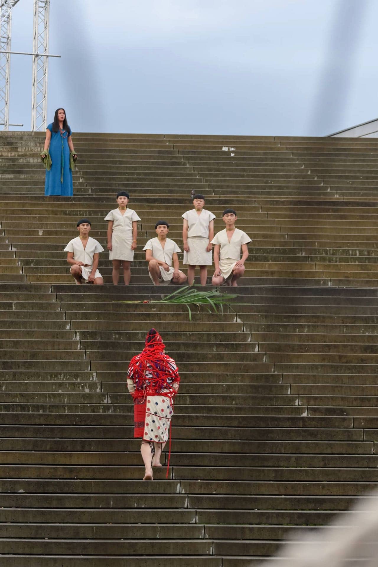 該劇也在去年(2022)分別展示了三個階段的成果,首演是在東冬的部落——花蓮銅門部落,同年九月在林茲的電子藝術節演出STWST48x8版本,年底又在國立臺灣美術館的「問世間,情不為何物-2022台灣美術雙年展」呈現,展演場地也從戶外⾃然環境、城市空間發展至⽩盒子,今年(2023)年底也即將在台北試演場(黑盒子)加入新興的科技元素並轉化成大型的劇場作品。