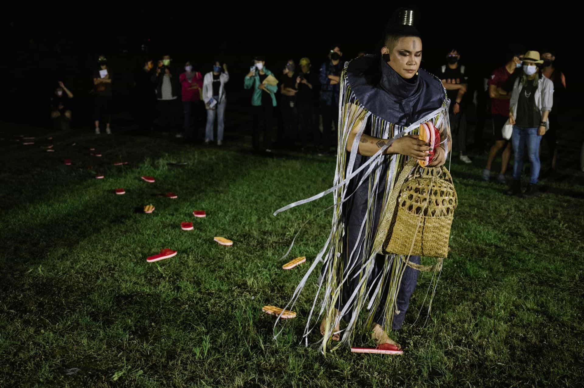 教會當然為我們做很多,比如說幫我們復振文化、語言等等,可是到儀式的時候還是禁止,殖民也許不只是以武力的方式現身?就像有人不敢看自己的裸體是一樣的意思,你不敢看你真正的樣子。所以我就裸體做儀式,其實我要表達的是這個儀式的、祖靈的、跟自然之間的信仰,就是我們最開始的樣子,那你為什麼不敢接受?