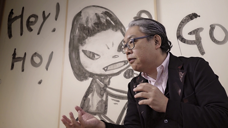 徐 因為謙哥說「不要拍到我」,所以最早我們拍攝他在誠品新書發表會的短片時,便把攝影機定位在他的肩膀上,整部片子都從他的視角出發。原先預想這部紀錄片以第一人稱來拍,還開玩笑說乾脆在謙哥肩膀上裝一個GoPro從頭拍到尾好了。開拍前需要拍攝腳本,謙哥看了第一個版本後說:「『我』太多了。」所以我砍掉一部分,他覺得還是太多,再砍,還是太多!拍攝腳本一直打掉重來,過程非常痛苦。謙哥說:「從我出發去看的藝術世界,但不要有我。」這句話太矛盾也太玄,我和製片李彥勳都快崩潰了。當時遭遇兩個難題,第一是我們解決不了謙哥提出的要求,第二是我們無法在短期內達到藝術專業期待。於是我寫信問謙哥,可不可以找一個專家來?正好當時簡詩璇(Serena)從蘇富比離開,休息一段時間,謙哥便找她擔任紀錄片的藝術顧問,這給予我們很大的幫助。我們重新擬定腳本,再跟謙哥開會討論。他看了腳本就說:「嗯,我覺得這個內容都沒問題,但我出現太多了。」這下換Serena瘋掉了,她說:「這邊你也不出現嗎?義大利也不去嗎?新加坡也不去嗎?」謙哥就回:「對,我不要去。」影片內容都是謙哥建議拜訪的,也都是他去過的地方。我們想拍有互動的紀錄片,但謙哥不到場的話,我們不知道怎麼拍了。此外受訪者各個大有來頭,謙哥不去,那我們這些晚輩怎麼辦?這時候我忽然觸底反彈,問:「謙哥,是不是我可以都不拍你?」他說對。直到那時我才想通了。謙哥提供的名單內容,反映他腦袋裡的觀點及視野,就像攝影師拍了一百張照片,雖然自己沒有出現在照片中,但你知道這就是他的作品。所以我拍下謙哥接觸過的人事物,這些影像組合起來仍然呈現了他的藝術世界。於是我問他對於這部片子的想像?他說:「就像愛麗絲夢遊仙境。你像是一隻誤入叢林的小白兔,進入藝術世界,裡面有各種張牙舞爪、形形色色的人事物,我想知道你怎麼看待我們這群人?我已經做好心理準備接受你任何批評,就看你敢不敢!」姚 我滿喜歡浩軒的鏡頭語言,他的觀看方式有著這一代年輕人「不老式的溫和儒雅」,但並不代表沒有觀點。他的性格與我完全相反,特別地緩慢,總是會多想一下。我們有不同的世界,不同的閱讀方法,而我很享受傾聽與閱讀別人的觀點。如果我入鏡了,將變成由我主導一切,那我就無法享受這種樂趣了,所以我必須往幕後走。