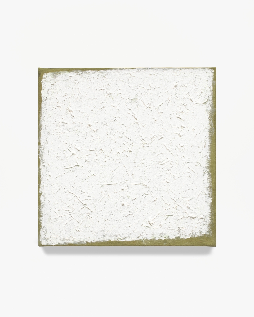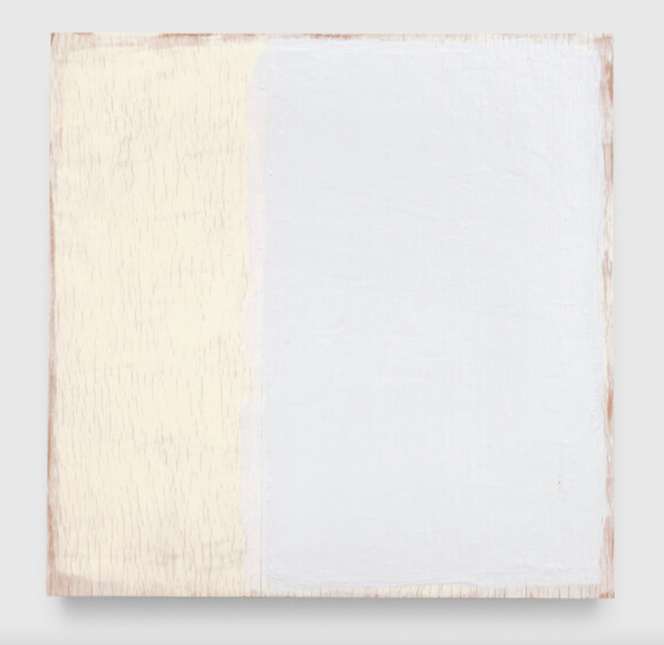 羅伯特·萊曼(Robert Ryman),《無題》,油彩、經過拉伸的亞麻畫布,197.2 x 196.8 x 4.8cm,約1963(卓納畫廊提供)