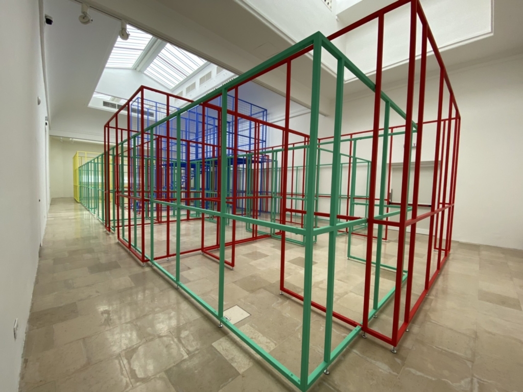 波蘭館以「數據」(Datament)為題,針對四個不同國家或地區(波蘭、墨西哥、馬拉威、香港)的人們居住空間的採樣調研數據,用不同顏色鋼材料搭建起、也互相套疊的空間裝置,來打造足以讓我們對於數據有新形式認知的方式。人可在這一裝置中平面、上下移動的事實,既呼應其本身即有關人的居住空間的前提,也用身體互動性來暗示數據本身、以及利用大數據不斷累積的統計分析和演算法對當代人的深刻影響。空間裝置的高度抽象化,與四周牆上所展出的研究過程與不同成果的檔案或文字展呈,形成強烈的反差與互補。