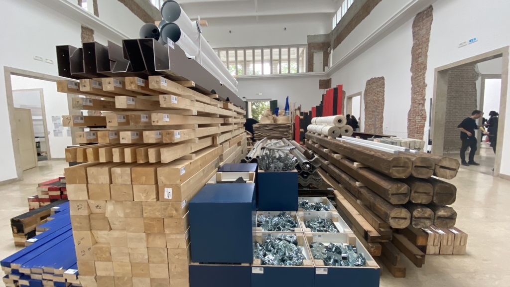 德國館選擇了直接與去年的威尼斯雙年展作對話,接納了去年展覽結束後整個展區中所留下的大量廢棄材料,廣泛包括木料、金屬、地毯、塑膠、人造皮革等幾乎各類大小材料,讓整個德國館變身為一座倉庫。同時,材料的維護和再利用也是從觀念到具體實踐的重要內容,現場可見許多觀眾在材料區自由挑揀、自行裁剪,也根據展覽所提供的DIY手冊來製作如手袋等不同用品。德國館以相當直接的行動方案回應節能減碳議題,但做到條理與美感並存,觀念與實踐之間相通,仍是可見下了一番功夫。