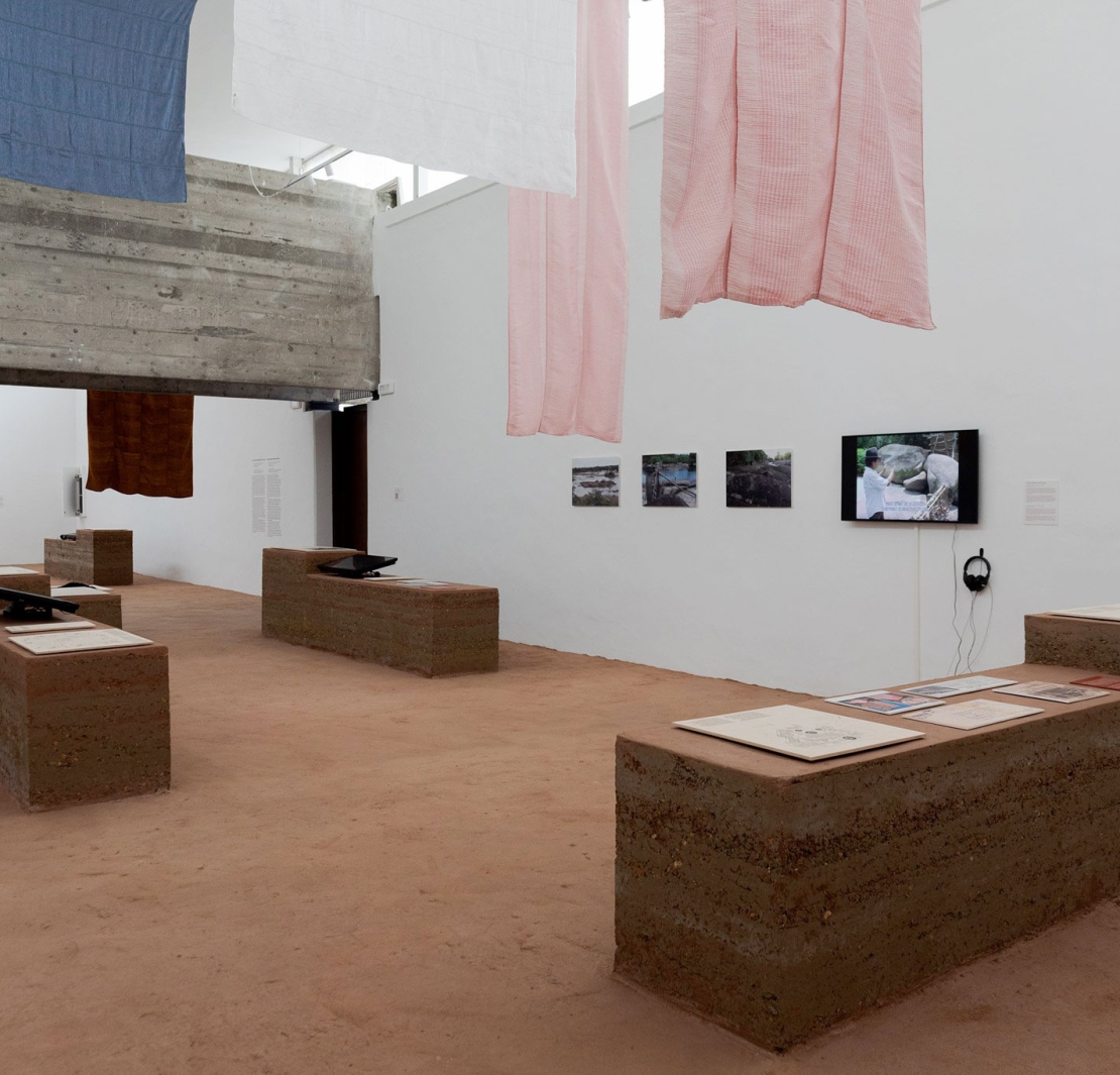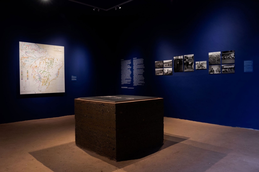 以「大地」(Terra)為題的巴西館由Gabriela de Matos與Paulo Tavares策劃,以「重新思考過去、以設計可能的未來」為核心概念,交織著巴西的過去、現在與未來、人與社區、祖先與離散、自然與人類社會等彼此關聯的課題。第一間展廳題為「為經典去殖民化」(De-colonizing the Canon),圍繞以「無中生有」的現代城市景觀建設而知名的巴西首都巴西利亞,從「去殖民化」的角度、選擇這片土地的原住民族Quilombola為立足點而展開敘事。另一間展廳則題為「起源之地,未來的考古學」(Places of Origin, Archaeologies of the Future),則更進一步地深入真實的實踐,透過五個範例來考察非洲裔巴西人在社區與土地中如何運用和實踐古老智慧與大地共生,讓人看到「去殖民」與「脫碳」之間的連結。除了兼顧議題的在地與普世,整個巴西館也表現出詩意的觀念性與異常紥實的物質性——甚至展間地面與展檯都用泥土鋪就、砌成,呼應本屆威尼斯建築雙年展始終強調的「零碳」方向,柔和溫暖的色調也像是象徵著傳統、貼地的古老生活方式。