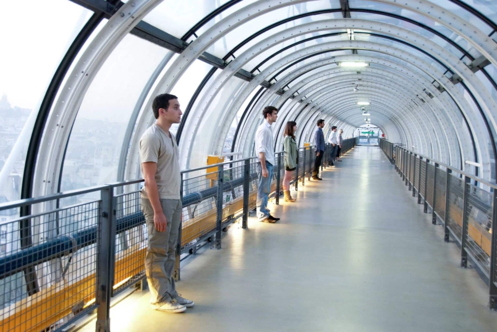 從網路上搜尋藝術家的名字,那麼十之八九會出現的絕大多數都是藝術家的現場行為藝術,一如藝術家「當我走進一個房間時,我能聽到房間發出的音符,就像它在唱歌一樣。」如此的自述般,比爾的行為創作是以表演者進行單純的發聲,藉由精密的反射與折射計算,將建築視為某種共鳴腔般,顯現其形式中的聲音特質。在此,「場域」從一個視覺性的幾何建構,轉向了聽覺性的幾何運算,而「人」恰是其丈量的尺度。(註2)「建築」與「音聲」二者其不可見的「幾何」關係,還可以從藝術家:「建築和音樂在某種程度上共享相同的特質。這個事實關乎到幾何學中畢達哥拉斯的故事。故事講述到一位鐵匠在打造金屬時,當他聽到金屬被敲擊的聲音,開始注意到金屬的大小和聲音音符之間的關係。這是2000多年前的事情……。另外一位非常著名的建築師叫做維特.魯威(Vitruvius,80–70 BC–after c.15 BC)。他是第一個記錄下來的羅馬建築師⋯建築和音樂之間的這種相關性一直存在,它可以追溯到很久以前,但從未被完全探索」。在此,「音聲」與「空間」的關係從「感知」的轉向進一步地朝向「認識」的轉向。可以說藝術家作品的「感知」始終蘊含著一個「認識」。例如藝術家於GOSH(Great Ormond Street Hospital,GOSH)兒童醫院所設置的公共藝術作品《畢達哥拉斯的階梯》(Pythagoras Stairs),便將「感知」與「認知」的轉向在其作品表現上展現得淋漓盡致。根據藝術家自述:「作品當你走上下樓梯時,會以真實的空氣通過風琴管對你唱歌⋯這意味著當你走上樓梯時,你會聽到音符變高,走下樓梯時,你的動作會使管子發聲變低,視力不好的兒童可以聽到,而聽力不好的兒童可以感受到管子傳出的震動」。
