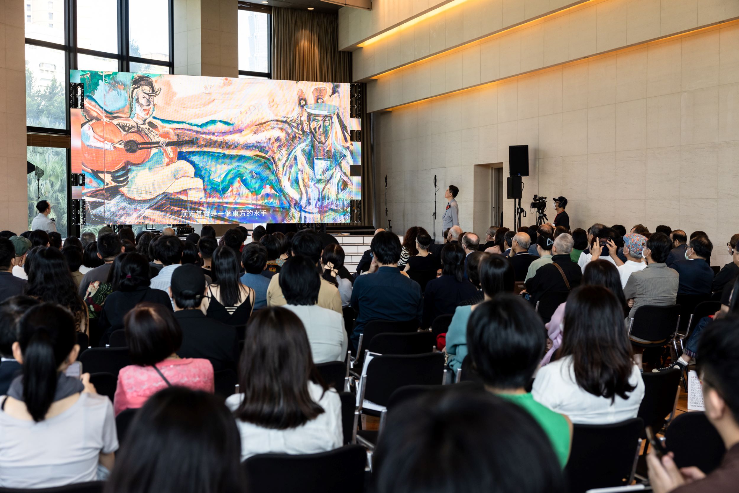 「他技術表現融合歐洲對油畫的傳統歷史,以及中國水墨的豐富背景,同樣也把不同主題融入在畫布上,探討當今很多議題,包然疫情、戰爭、生活、歷史、藝術,在當今時代下的許多投射。」