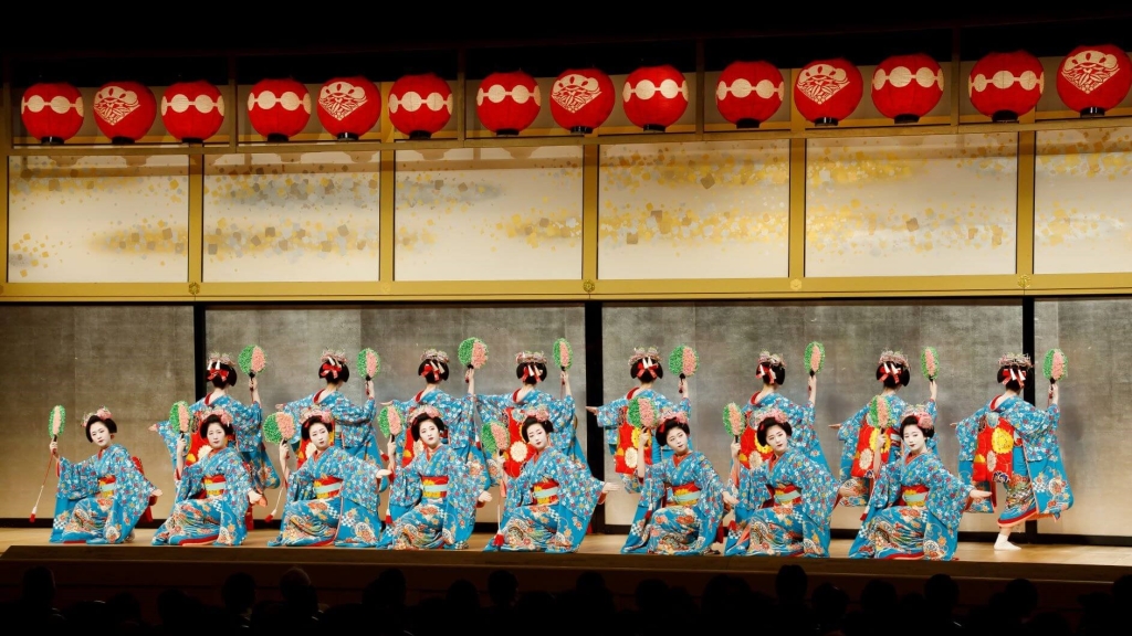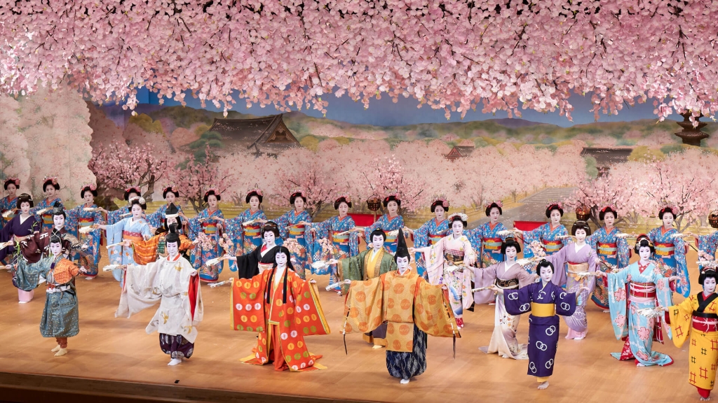 「都踊」與一般的藝舞妓在包廂內獨自或成對起舞不同,演出採用群舞的形式,引起了巨大的轟動。演出連續進行了80天,明治時期被譯為「Cherry dance(櫻花舞)」,以形容它華麗多彩的風格,並聞名於歐美,成為京都每年例行的公演活動。今年從四月一日開始,連續舉辦整整一個月,每天有三場公演,每場由近60名表演者共同打造。相比於偏向於藝舞妓展現舞藝鑽研成果的秋季溫習會,都踊更加強調大規模的製作,並委請名家撰寫劇碼,每一幕都是盛大而美不勝收的場面。