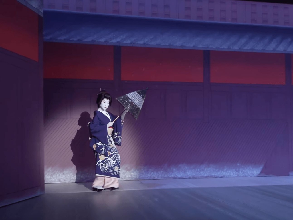 最終,在第八幕結束後,藝妓和舞妓齊聚在描繪八坂神社櫻花盛開的佈景前一起謝幕,花瓣飄舞的景象為這一小時的時空旅程畫下了美麗的句點。從第一幕的「置歌」,舞妓們在閃爍銀箔光澤的拉門前優雅起舞,一直到劇末,在櫻花瓣飄散的背景下謝幕,觀眾就像隨著時間的流轉一起感受著,最後又回到了當下櫻花綻放的美好時刻。