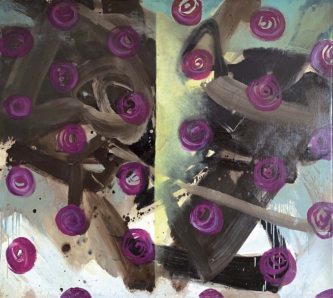 趙春翔《玫瑰風暴 》紙、水墨、壓克力彩、畫布,145×163cm,1962。(© 陳木元)