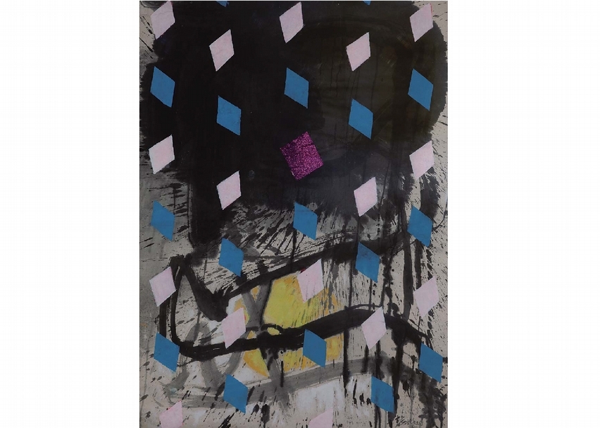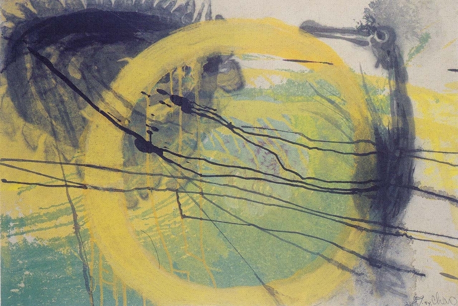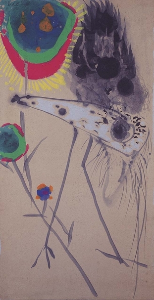 趙春翔《艷光四射》紙、水墨、壓克力彩、畫布,89×46cm,1966。(本刊資料室)