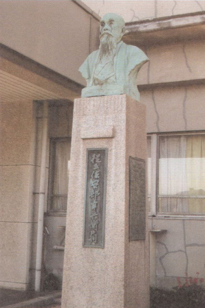 根據塑像台座的記載,安部出生於1847年,在橫濱從事貿易,於製粉和製糖事業皆獲得重大成功,1919年去世時更捐出百萬元給神奈川縣使用於公共事業,而神奈川縣立商工高校(初建成時名為「神奈川縣立商工實習學校」)就是在此脈絡中於1920年四月得以成立,也因此該校十分感念安部的樂善好施,便設立銅像紀念。