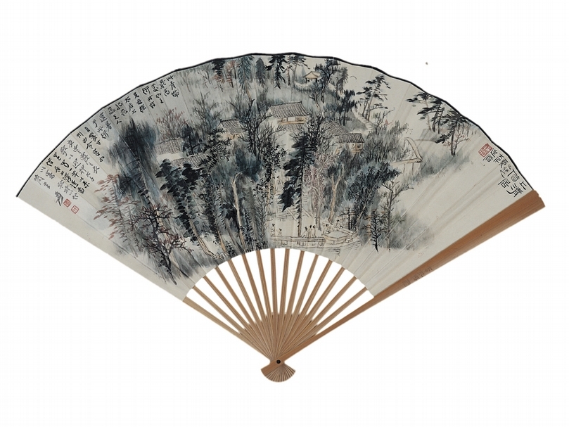 張大千〈上清借居〉,設色紙本,成扇,18.5×48公分。
