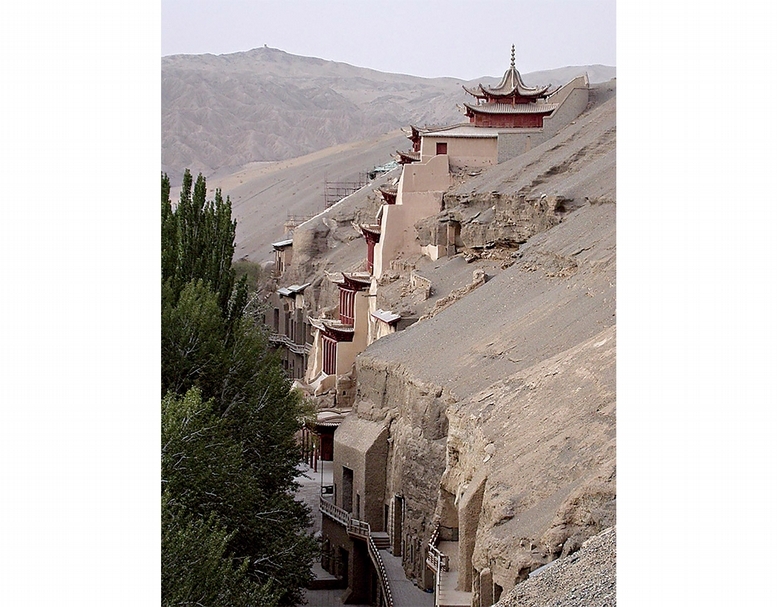 敦煌現今的景觀,莫高窟對張大千藝術創作偉業之建構影響深遠巨大。(攝影/巴東,攝於2005年。)