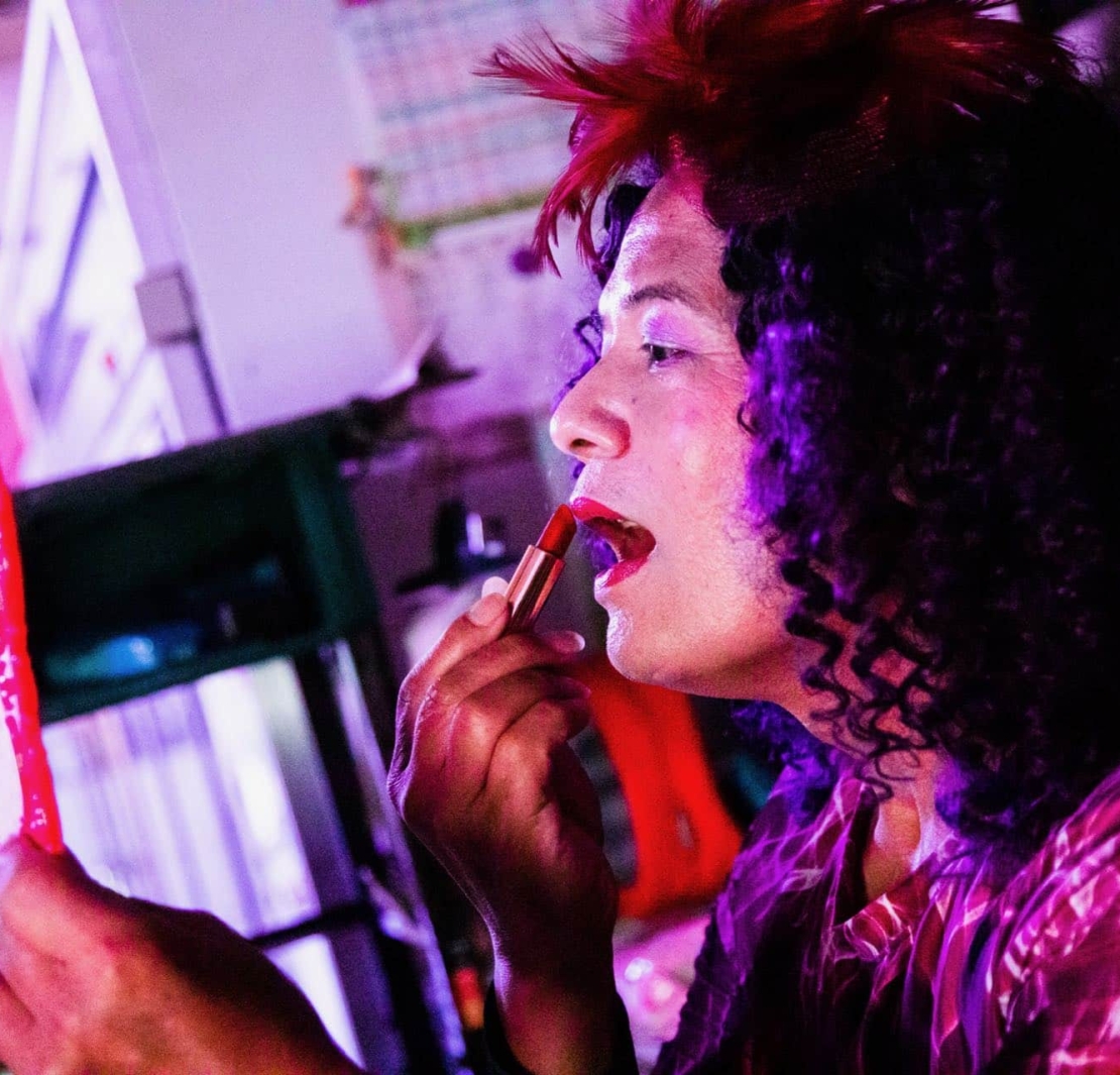 2020年以後原住民藝術場域中另一造酷兒風貌,不在主體對其文化認同的思辯場域中,藝術領域的工作者,亦轉換視角,拓闢至過往的原住民當代藝術生產與展演時空之外。2022年,《Pulima Link》找我策劃一檔討論「原住民變裝表演」的展覽,我們聚焦在這種表演文化頻繁出現的場域裡,包括今日在台北都會同志娛樂場域現身的原住民變裝皇后(Drag Queen),還有活躍於當代部落場域中各種婚慶場合的跨性變裝表演秀。(註7)