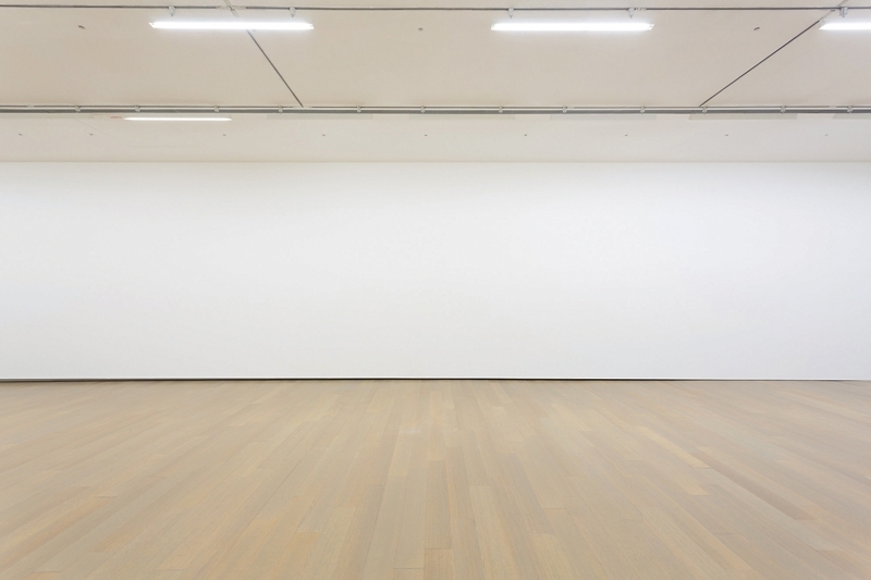 這種停留在原地的時刻,就是種遲滯而告別不了(或永遠告別中)的低限感,於是理解了這層,再回顧那些如電捲門或尺規的活頁筆記紙,或櫥窗中黏貼作品《膠帶、補土與漆》,受引力而下降中(卻又被展牆黏住而滯止)的膠帶,以及由於低限的物件文本,它又繞回了巡迴世界多處的知名限地測量裝置《邊境》場中的工事地板,還有每次展件都會有的繪畫式手稿,和那如尚.雷諾(Jean Reno)扮《Léon》的隨手盆栽,就是隨展可見的不同版本《白色畫作》。