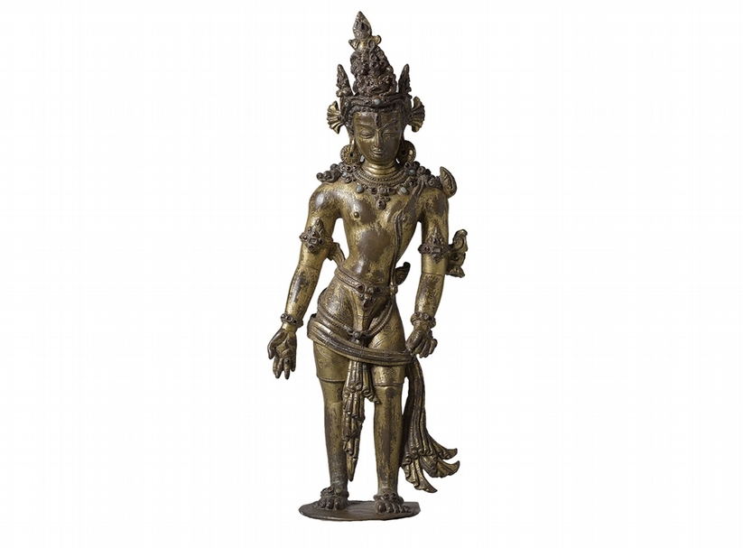 圖1 尼泊爾14至15世紀〈銅鎏金寶石鑲嵌蓮花手觀音像〉,29.2×8.8×5.4公分,阿姆斯特丹國家博物館藏,AK-MAK-1298。圖∣王靜靈