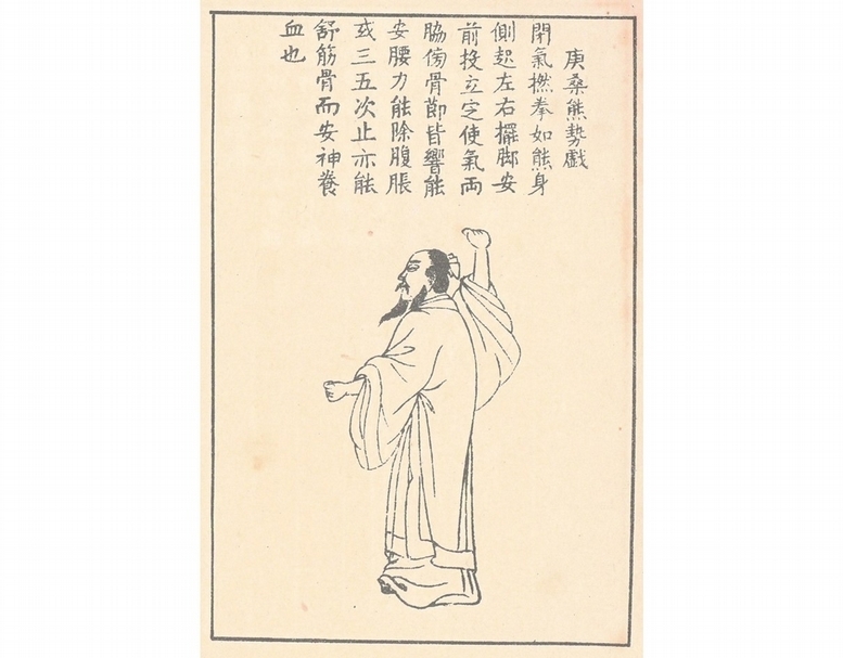 在《後漢書》中,華陀被形容為「醫術高超,兼通數經,曉養性之術,年近百歲卻貌如壯年」的高人。書中記載他對學生吳普說的一段話,成了後世諸多養生功法共通的運作原則:「人體欲得勞動,但不當使極耳,動搖則榖氣得消,血脈流通,病不能生,譬猶戶樞,終不朽也,是以古之仙人為導引之事,熊經顧,引挽腰體,動諸關節,以求難老。」