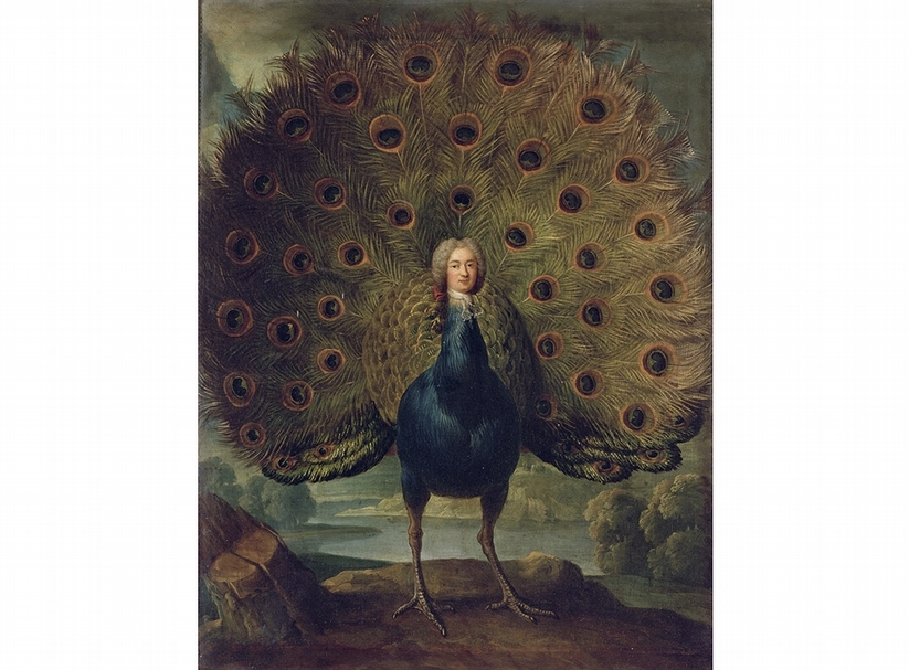 法蘭西學院於18世紀的油畫作品《開屏的碧紘公爵》。© Adagp, Paris 2016