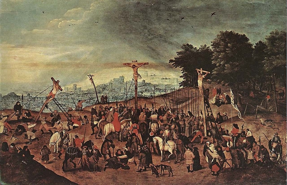 小揚.柏勒荷爾《基督被釘在十字架上》,油彩、木板,82×123cm, 1617。(捷克布達佩斯美術館提供)