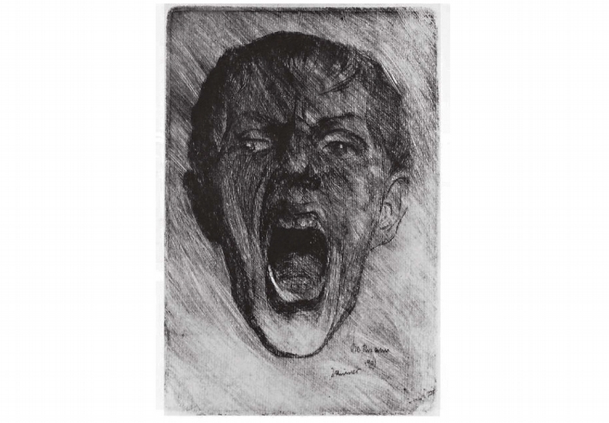 貝克曼《自畫像》 ,直刻版畫,21.8×14.3cm,1901 ,私人藏。