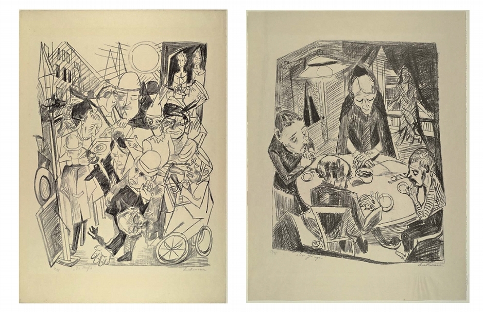 圖左:貝克曼《街道》《地獄》系列第3幅,圖版73.5×48.5cm,紙張87.3×61.2cm,1918-19 。圖右:貝克曼《飢餓》《地獄》系列第5幅, 圖版73.5×48.5cm,紙張87.3×61.2cm,1918-19。