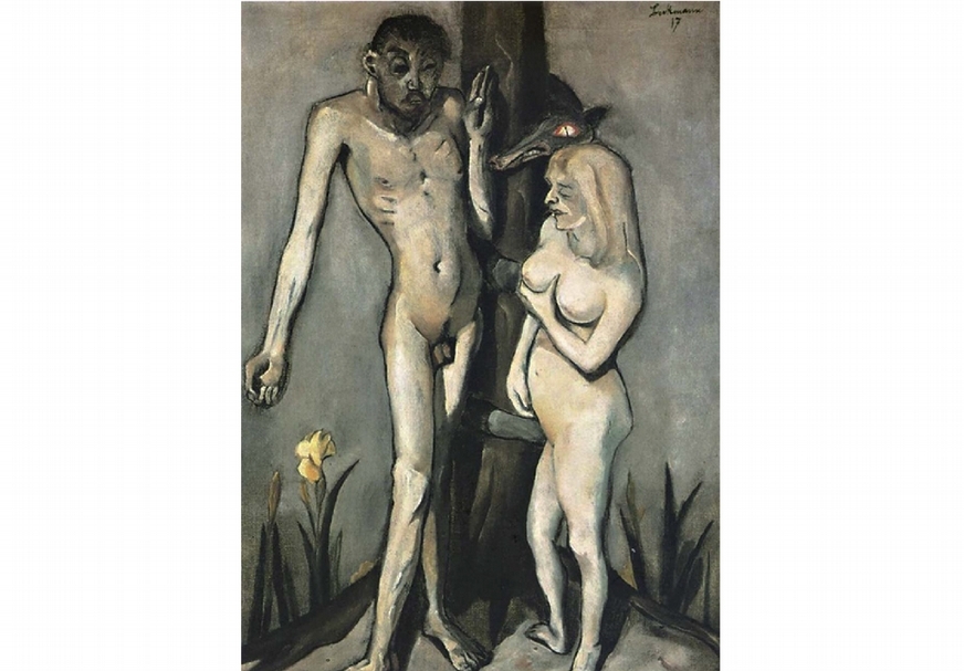 貝克曼《亞當與夏娃》,油彩、畫布,80×57cm,1917。( 德國柏林新國家藝廊提供)