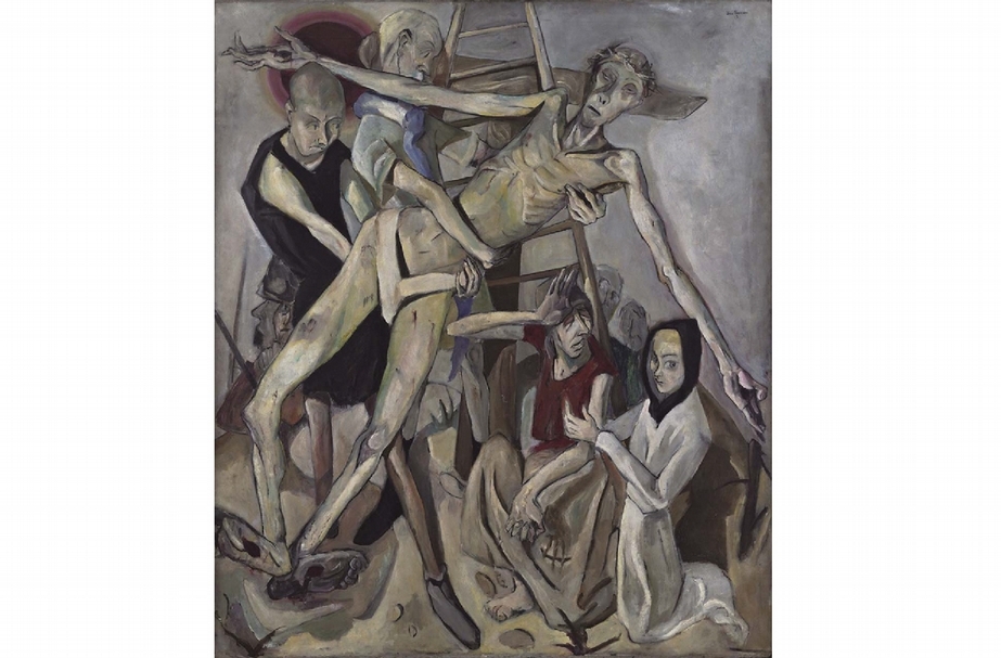 貝克曼《基督從十字架解下》,油彩、畫布,151.2×128.9cm, 1917 。(美國紐約現代美術館提供)
