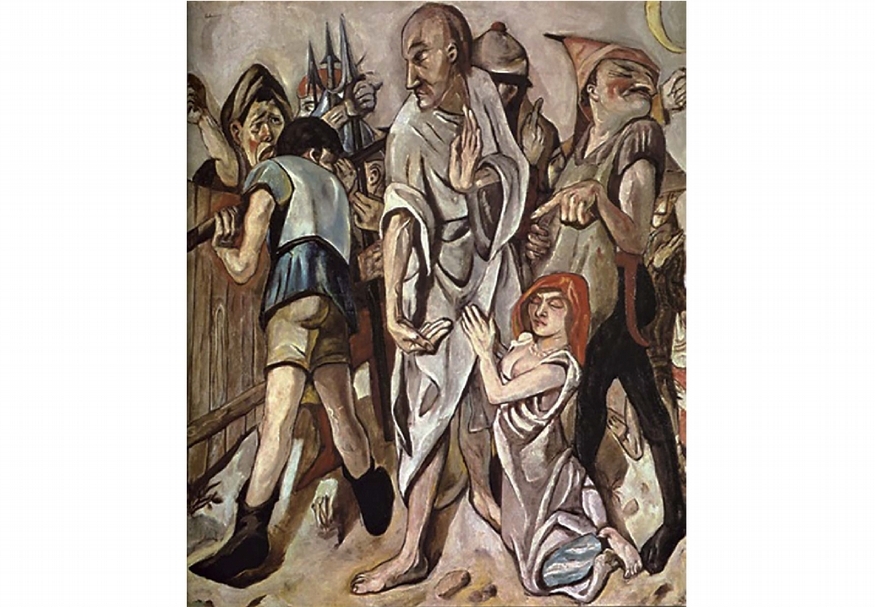 貝克曼《基督和犯淫罪的女人》,畫布 149.2×126.7cm,1917 油彩。(美國密蘇里州聖路易美術館提供)