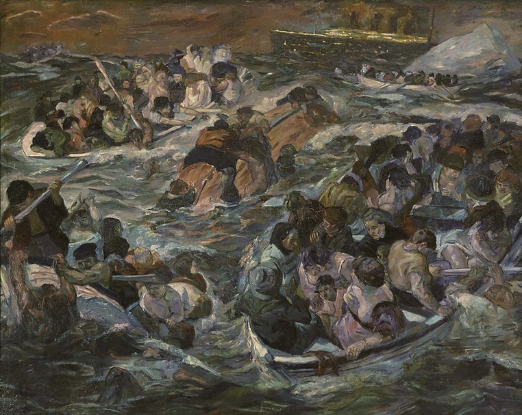 貝克曼《鐵達尼號的沉沒》,油彩、畫布,264.8×330.2cm,1912-13。(美國密蘇里州聖路易美術館提供)